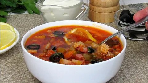 За пару минут до конца добавьте оливки или маслины. Подавайте солянку горячей с долькой лимона — это придаёт супу лёгкую кислинку и свежесть. По желанию можно добавить свежую зелень и сметану.
